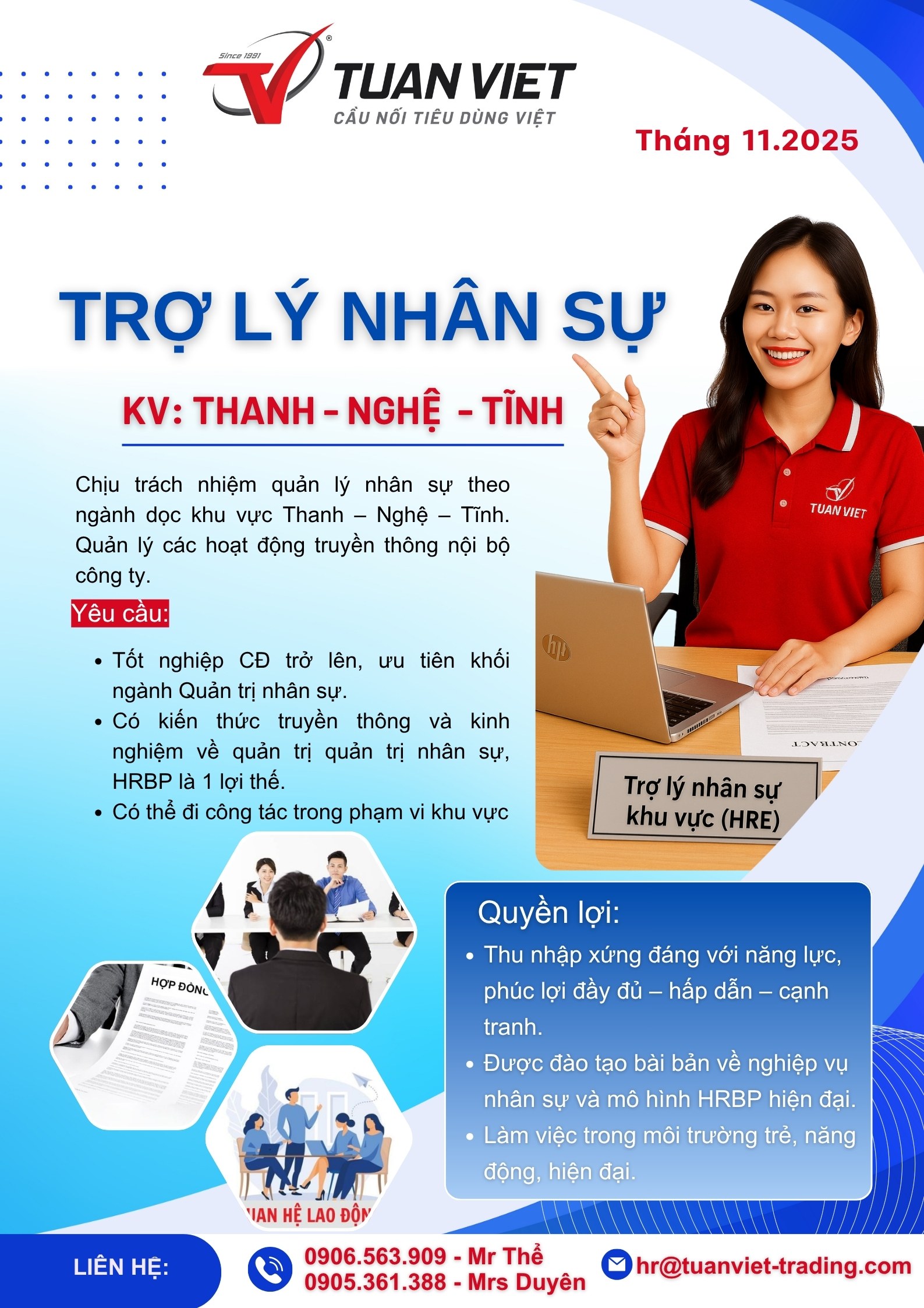 TUYỂN DỤNG NHÂN VIÊN SALE THỊ TRƯỜNG KHU VỰC HÀ TĨNH
